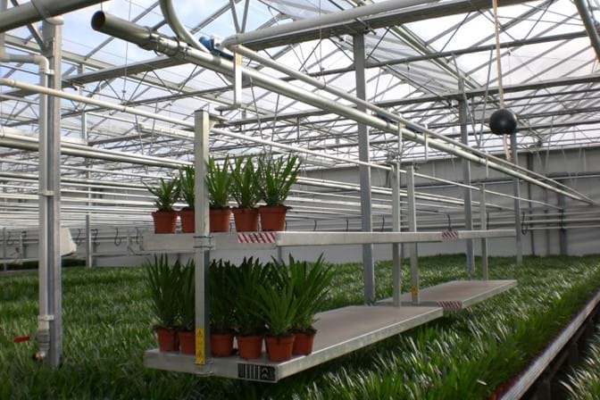 Monorail trolleys are especially intended for transport via monorail pipes. By using monorail trolleys, more space appears to be free on the cultivation floor.